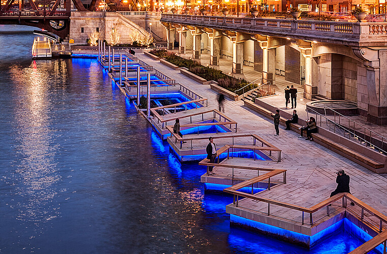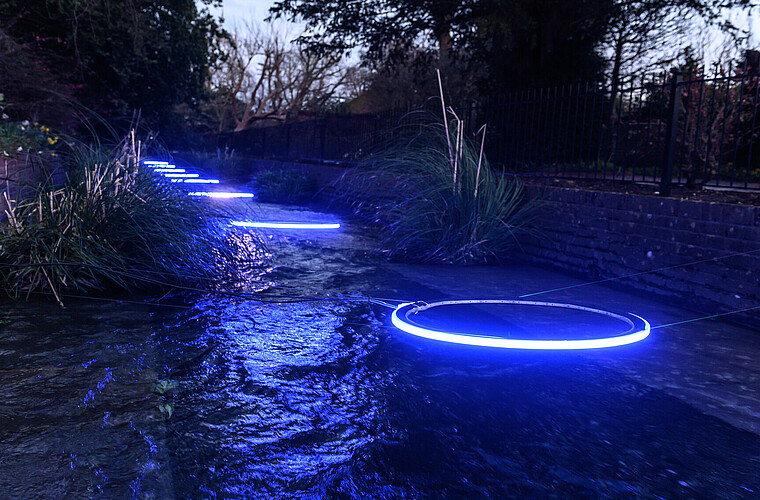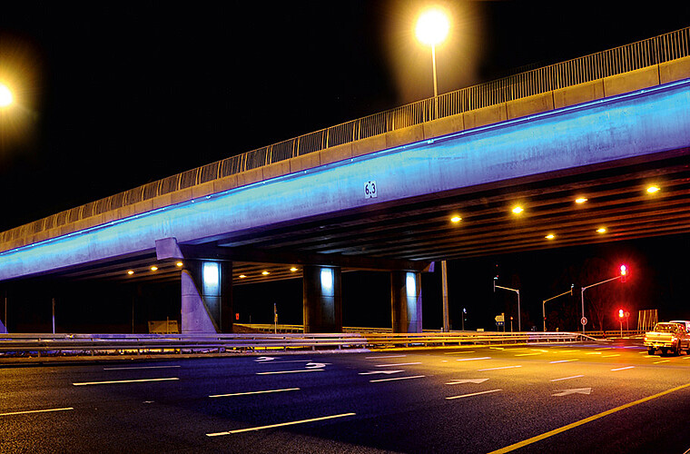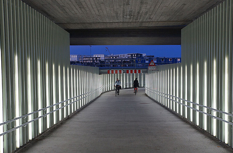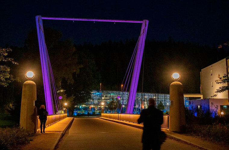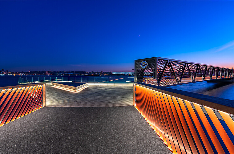 Weeze, Germany Bridge lighting Nierspromenade