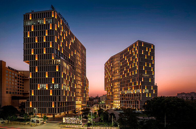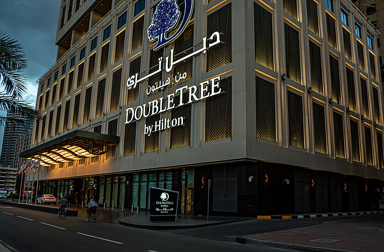 Dubai, United Arab Emirates IBN Battuda Gate Hotel backlighting