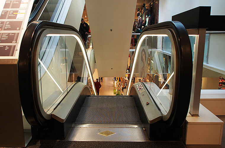 Moers, Germany Shopping mall escalators lighting