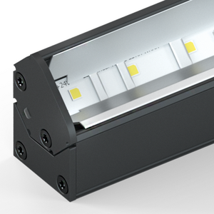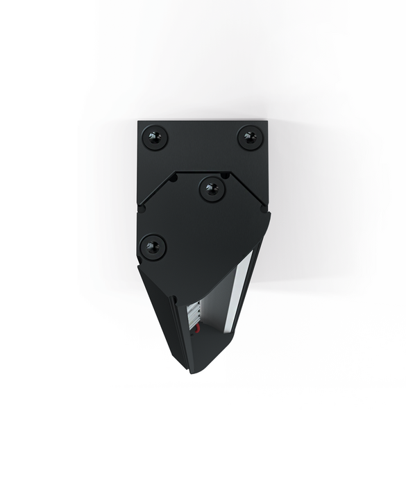 スリムで離散的な直付け壁面ウォッシャー。45°傾けた鏡のようなアルミニウム反射板で光源を隠します。